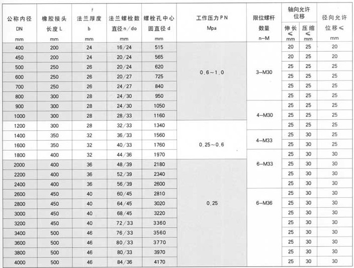 加固型限位可曲撓橡膠接頭具有良好的綜合性能,主要用于原水和污水的提升和輸送,火力發電廠的給水和冷卻循環水,冶金行業,冷凝水,化工行業的化學物質的管道輸送,石化行業的冷卻,稀釋及其它行業長短距離管線間的柔性連接。因為橡膠具有較高的耐磨性,還適用于一切行業的粒狀和粉狀及汽體的低溫輸送